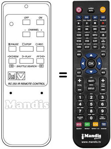 Telecomando che sostituisce l’originale RC 250 in tutte le sue funzioni.