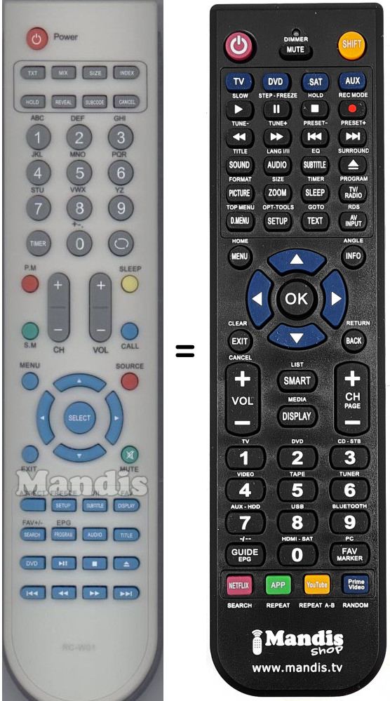 Telecomando che sostituisce l’originale in tutte le sue funzioni.