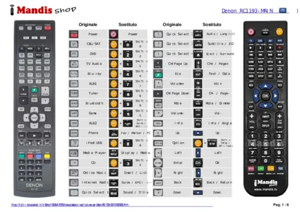 Questo telecomando sostituisce completamente il tuo RC-1193 (30701016200AD) e offre tutte le funzioni dell'originale.