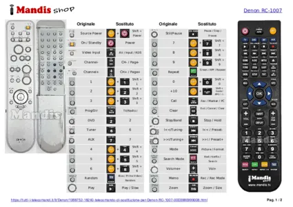 Questo telecomando sostituisce la maggior parte delle funzioni del tuo RC-1007 (00D3990999008). Non è un telecomando universale, ma una copia con la maggior parte dei tasti e delle funzioni del tuo originale.