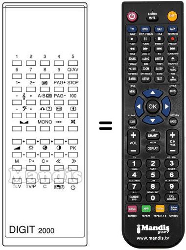 Telecomando che sostituisce l’originale DIGIT 2000 in tutte le sue funzioni.