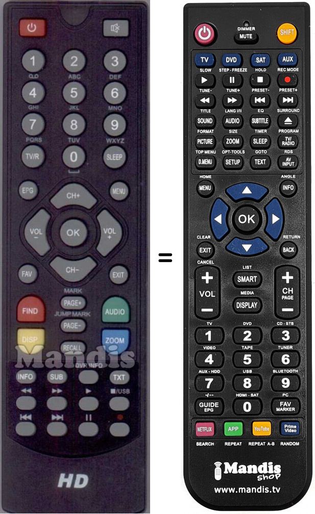 Telecomando che sostituisce l’originale in tutte le sue funzioni.