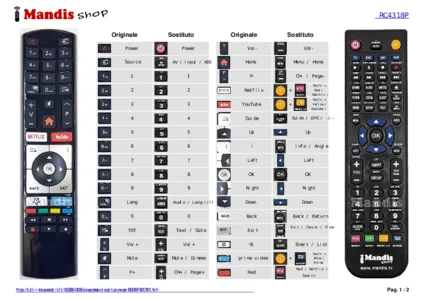 Questo telecomando sostituisce completamente il tuo RC4318P (30101761) e offre tutte le funzioni dell'originale.