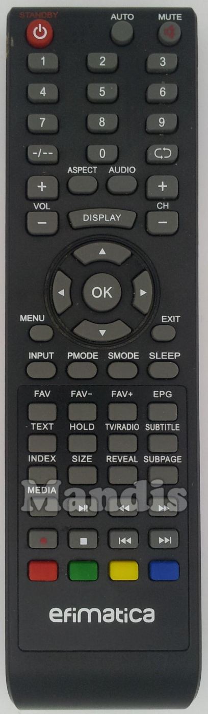 Telecomando originale REMCON1449 che serve per televisori della marca Efimatica. Si tratta di un modello originale di telecomando.