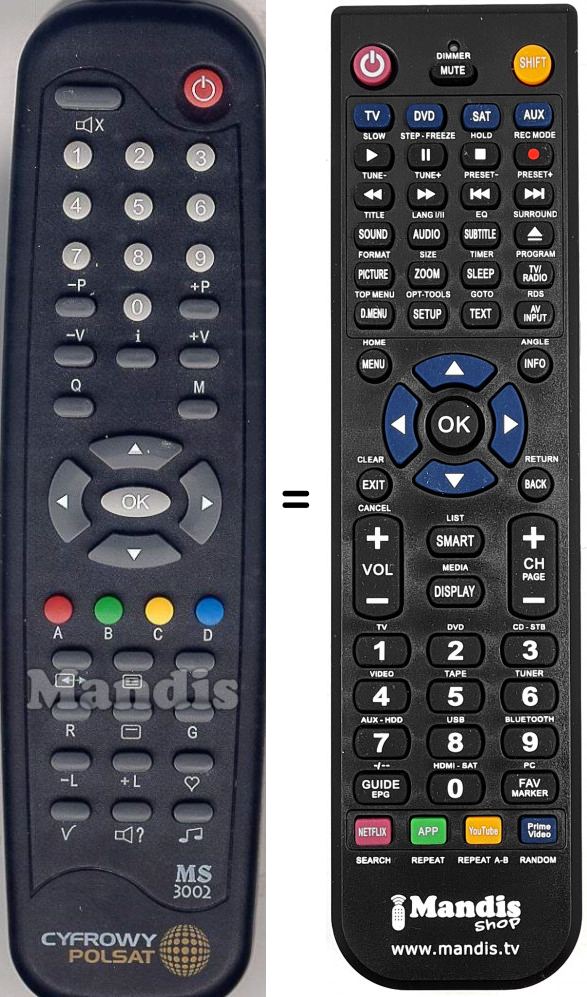 Telecomando che sostituisce l’originale in tutte le sue funzioni. Non si tratta di un telecomando universale ma di un telecomando che sostituisce l’originale. Riceverà il telecomando completamente pronto per il suo funzionamento, deve solo mettere le pile. Non è necessario programmarlo. Le diamo garanzia totale che il telecomando compirà le stesse funzioni del telecomando originale.