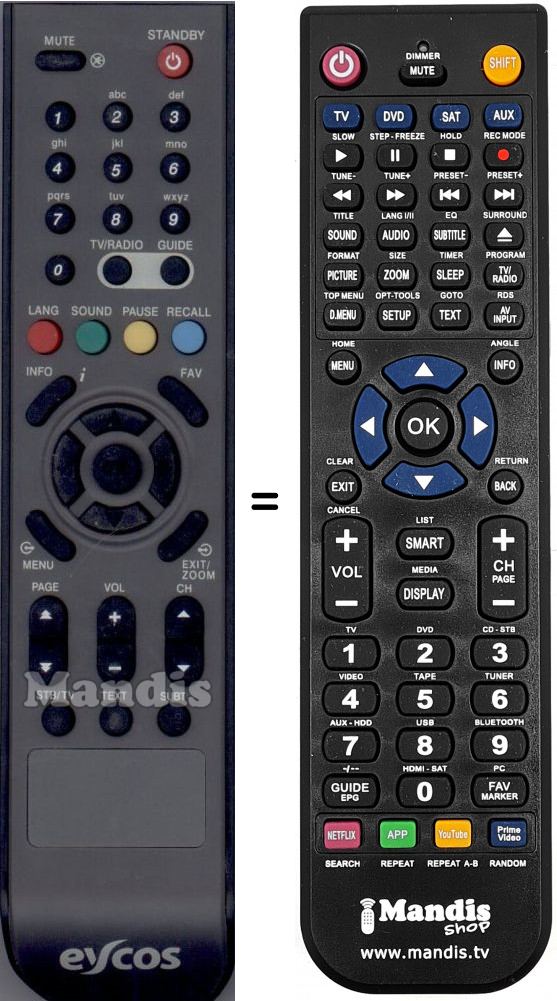 Telecomando che sostituisce l’originale in tutte le sue funzioni.