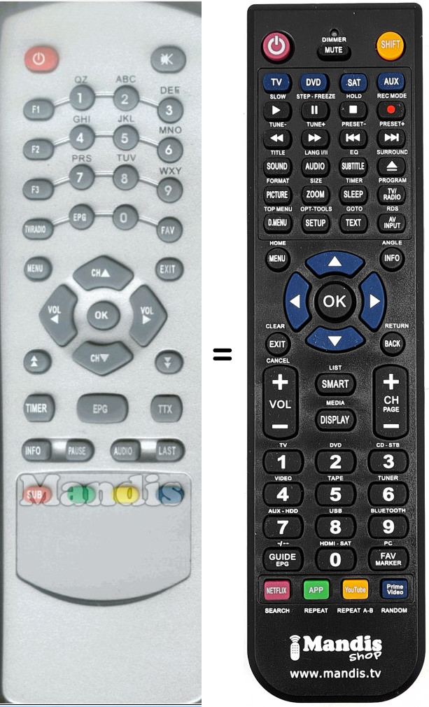 Telecomando che sostituisce l’originale FF51 in tutte le sue funzioni.