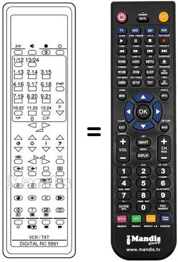Telecomando che sostituisce l’originale in tutte le sue funzioni. Non si tratta di un telecomando universale ma di un telecomando che sostituisce l’originale. Riceverà il telecomando completamente pronto per il suo funzionamento, deve solo mettere le pile. Non è necessario programmarlo. Le diamo garanzia totale che il telecomando compirà le stesse funzioni del telecomando originale.