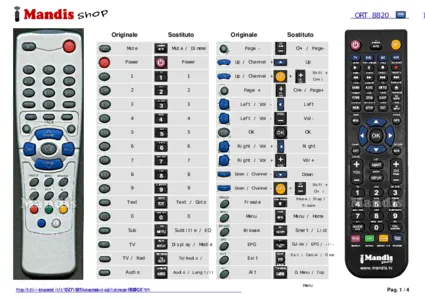 Questo telecomando sostituisce completamente il tuo ORT8820 e offre tutte le funzioni dell'originale.