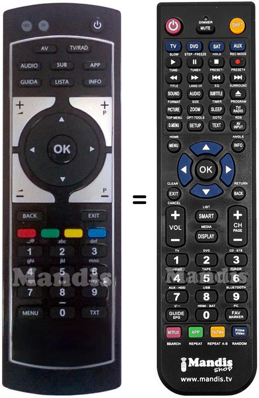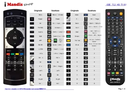 Questo telecomando sostituisce completamente il tuo ODE712HDTV e offre tutte le funzioni dell'originale.