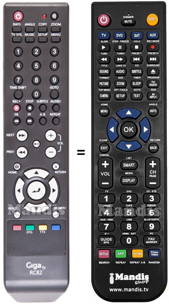 Questo telecomando sostituisce completamente il tuo RC82 e offre tutte le funzioni dell'originale.