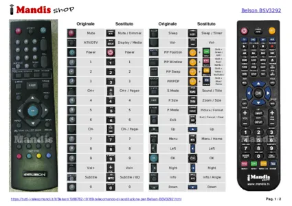 È incluso un documento per aiutarti a utilizzare facilmente il nuovo telecomando, indicando la corrispondenza dei pulsanti.