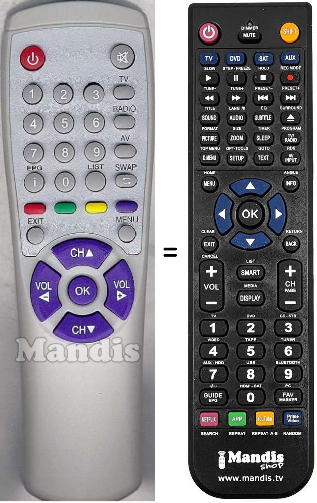 Telecomando che sostituisce l’originale DSF5LRC in tutte le sue funzioni.