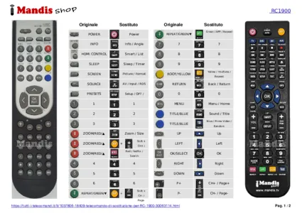 È incluso un documento per aiutarti a utilizzare facilmente il nuovo telecomando, indicando la corrispondenza dei pulsanti.