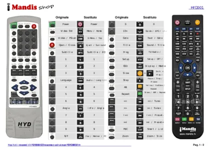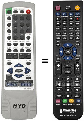 Questo telecomando sostituisce completamente il tuo HYD-9906DX e offre tutte le funzioni dell'originale.