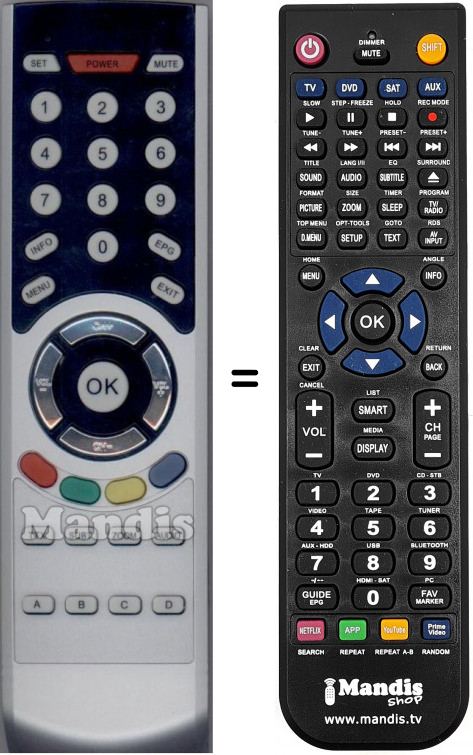 Telecomando che sostituisce l’originale in tutte le sue funzioni.