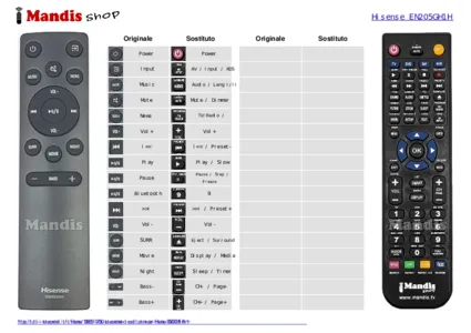 Inizio > Marche > Telecomandi Hisense > Telecomando per HISENSE EN205GH1H