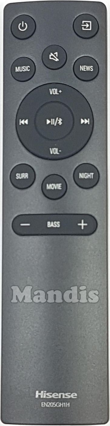 Telecomando originale EN205GH1H che serve per soundbar della marca Hisense. Si tratta di un modello originale di telecomando.