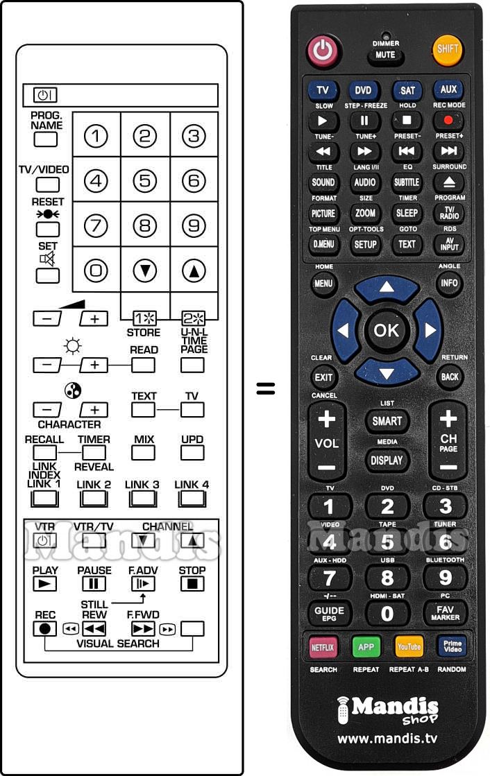 Di seguito, vi mostreremo la corrispondenza tra ciascun pulsante del telecomando originale e il pulsante che svolge la stessa funzione sul telecomando di sostituzione. In alcuni casi, potrebbe essere necessario premere il tasto SHIFT prima di premere un altro pulsante per eseguire determinate azioni. Queste funzioni aggiuntive sono spesso poco utilizzate e sono incluse per facilitare la comprensione del telecomando di sostituzione, o perché il telecomando originale ha più pulsanti rispetto al suo equivalente.