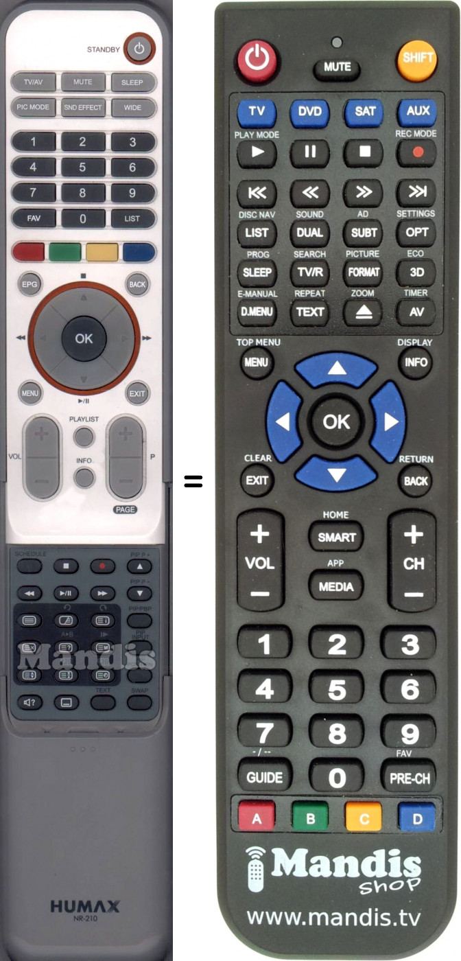 Di seguito, vi mostreremo la corrispondenza tra ciascun pulsante del telecomando originale e il pulsante che svolge la stessa funzione sul telecomando di sostituzione. In alcuni casi, potrebbe essere necessario premere il tasto SHIFT prima di premere un altro pulsante per eseguire determinate azioni. Queste funzioni aggiuntive sono spesso poco utilizzate e sono incluse per facilitare la comprensione del telecomando di sostituzione, o perché il telecomando originale ha più pulsanti rispetto al suo equivalente.
