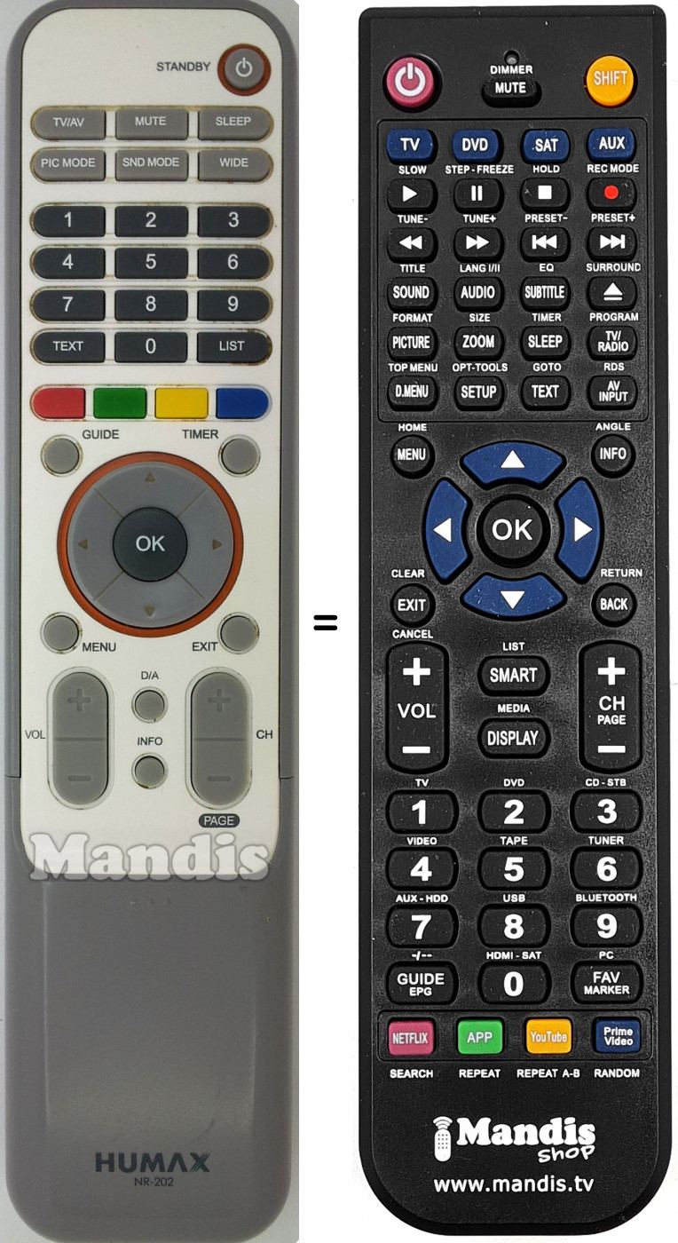 Telecomando ricambio NR-202 che serve per televisori della marca Humax.