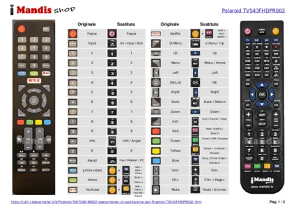 È incluso un documento per aiutarti a utilizzare facilmente il nuovo telecomando, indicando la corrispondenza dei pulsanti.