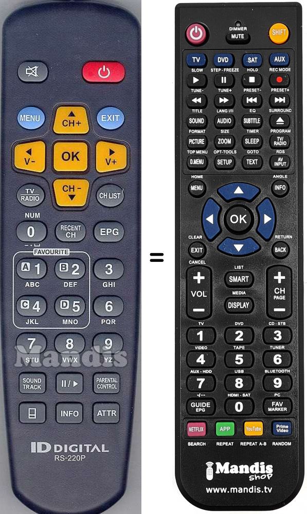 Telecomando che sostituisce l’originale RS 220P in tutte le sue funzioni.