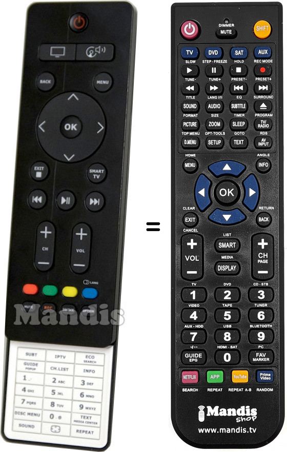 Telecomando che sostituisce l’originale in tutte le sue funzioni.