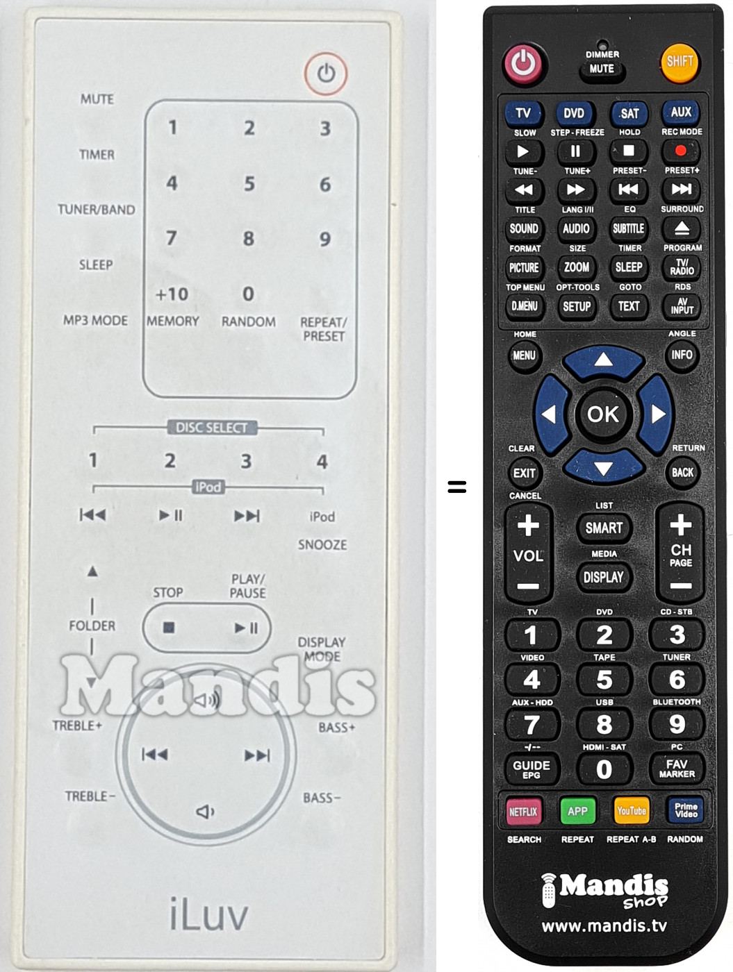 Il telecomando equivalente esegue tutte le funzioni, anche quando il controllo originale controlla vari dispositivi, nel controllo equivalente è possibile programmare diversi dispositivi (TV, DVD, SAT e AUX) in questo modo è possibile includere tutte le funzioni del telecomando originale. Se vedi il manuale dei tasti (istruzioni sul telecomando) puoi verificare che tutte le funzioni siano presenti.