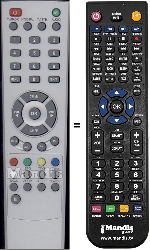 Telecomando che sostituisce l’originale in tutte le sue funzioni. Non si tratta di un telecomando universale ma di un telecomando che sostituisce l’originale. Riceverà il telecomando completamente pronto per il suo funzionamento, deve solo mettere le pile. Non è necessario programmarlo. Le diamo garanzia totale che il telecomando compirà le stesse funzioni del telecomando originale.