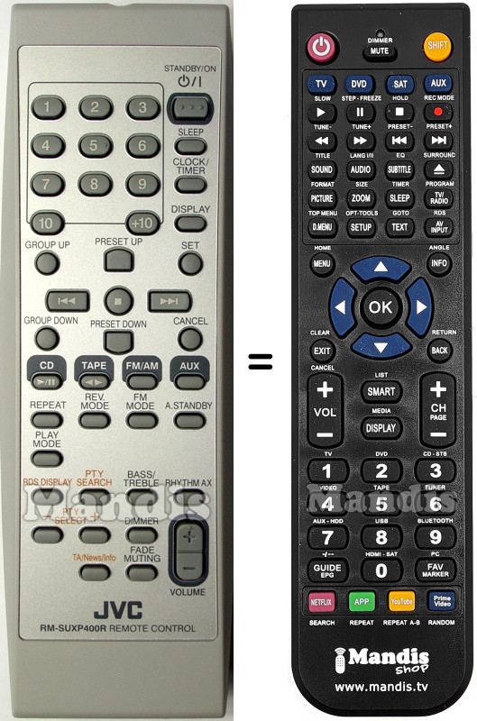 Inizio > Marche > Telecomandi JVC > Telecomando per JVC RMSUXP400R (RM-SUXP400RW2)