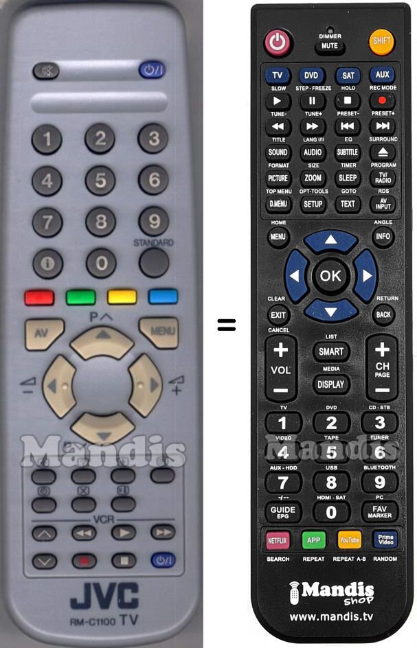 Questo telecomando sostituisce completamente il tuo RM-C1100 (VE30017763) e offre tutte le funzioni dell'originale.