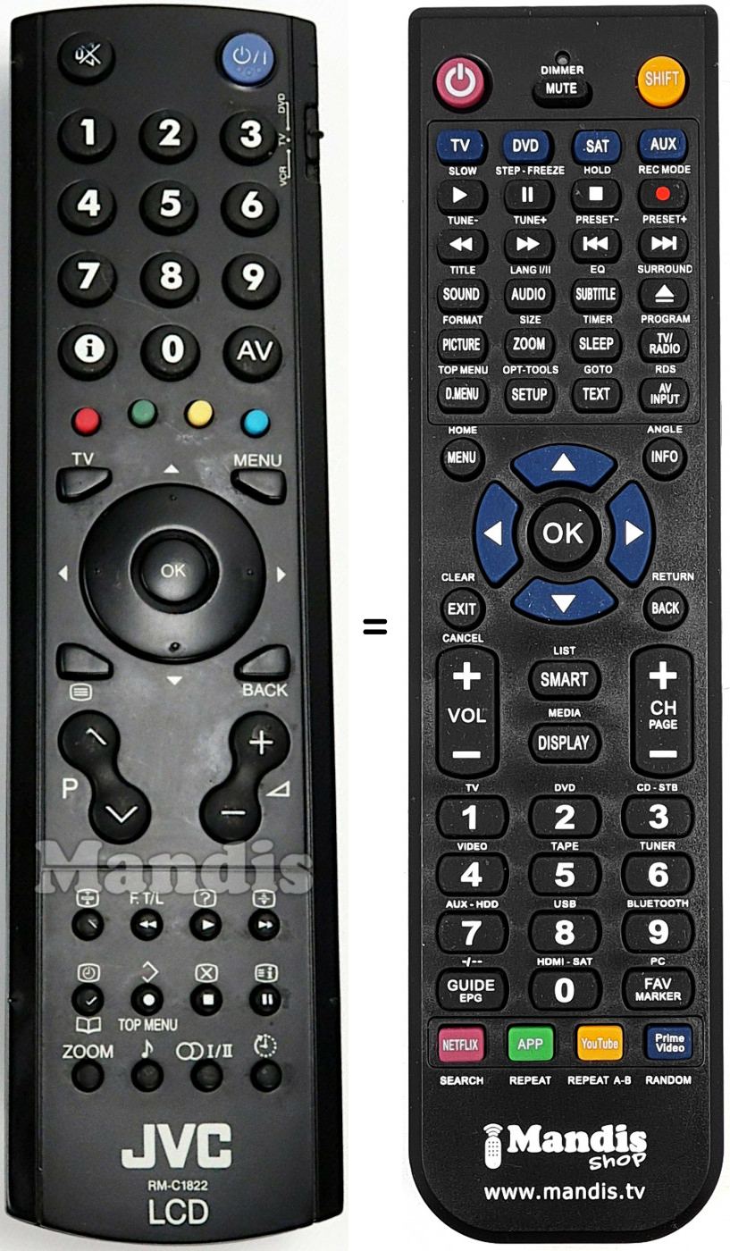 Telecomando che sostituisce l’originale RM-C1822 (RMC1822B1C) in tutte le sue funzioni.