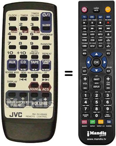 Telecomando che sostituisce l’originale RM-RXVB 90 E (QAL0066003) in tutte le sue funzioni.