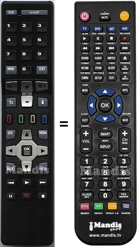 Di seguito, vi mostreremo la corrispondenza tra ciascun pulsante del telecomando originale e il pulsante che svolge la stessa funzione sul telecomando di sostituzione. In alcuni casi, potrebbe essere necessario premere il tasto SHIFT prima di premere un altro pulsante per eseguire determinate azioni. Queste funzioni aggiuntive sono spesso poco utilizzate e sono incluse per facilitare la comprensione del telecomando di sostituzione, o perché il telecomando originale ha più pulsanti rispetto al suo equivalente.