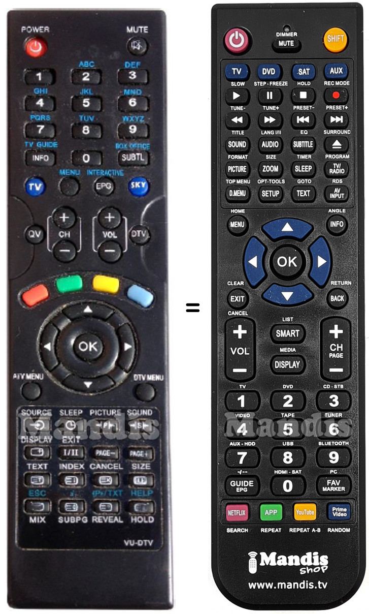 Questo telecomando sostituisce completamente il tuo VU-DTV e offre tutte le funzioni dell'originale.