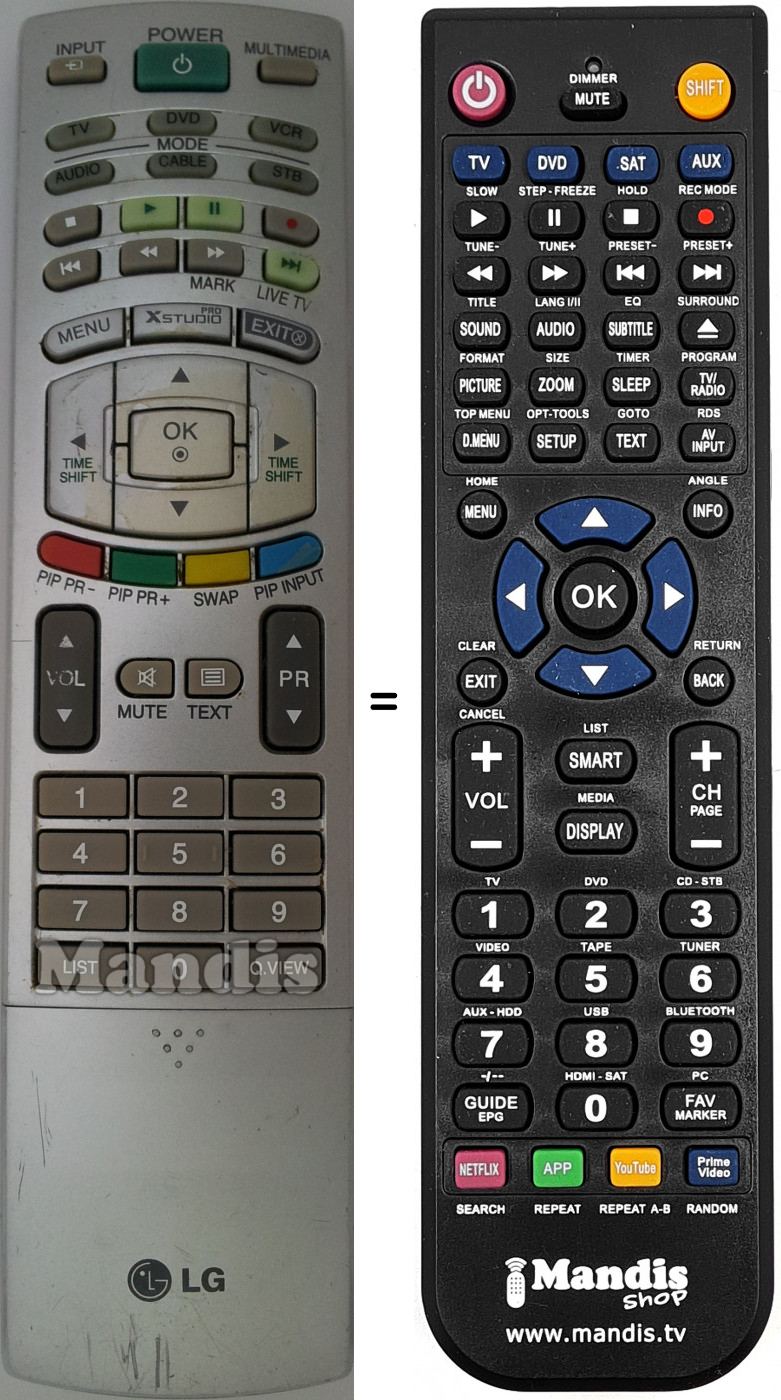 Telecomando che sostituisce l’originale AKB30588001 in tutte le sue funzioni. Non si tratta di un telecomando universale ma di un telecomando che sostituisce l’originale. Riceverà il telecomando completamente pronto per il suo funzionamento, deve solo mettere le pile. Non è necessario programmarlo. Le diamo garanzia totale che il telecomando compirà le stesse funzioni del telecomando originale.