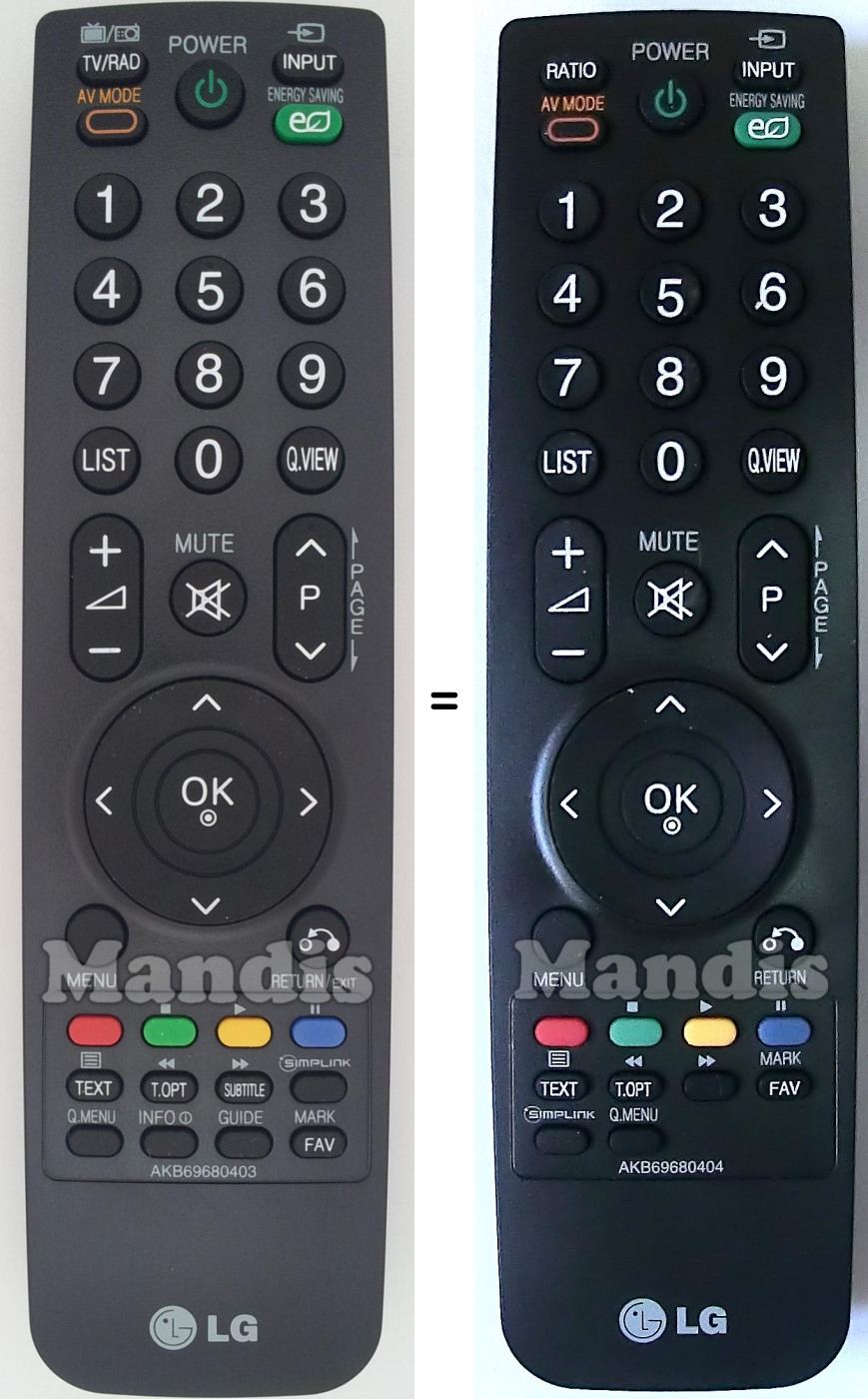 Telecomandi equivalenti che sostituiscono in tutte le funzioni il telecomando LG AKB69680404: