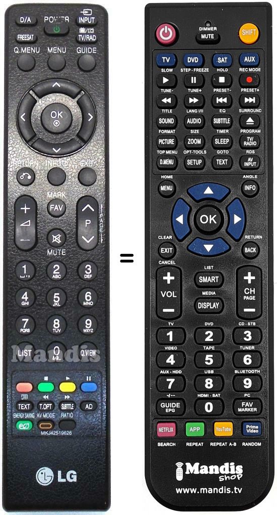 Telecomando che sostituisce l’originale MKJ42519626 in tutte le sue funzioni.