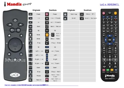 Di seguito, vi mostreremo la corrispondenza tra ciascun pulsante del telecomando originale e il pulsante che svolge la stessa funzione sul telecomando di sostituzione. In alcuni casi, potrebbe essere necessario premere il tasto SHIFT prima di premere un altro pulsante per eseguire determinate azioni. Queste funzioni aggiuntive sono spesso poco utilizzate e sono incluse per facilitare la comprensione del telecomando di sostituzione, o perché il telecomando originale ha più pulsanti rispetto al suo equivalente.