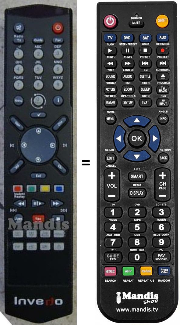 Telecomando che sostituisce l’originale in tutte le sue funzioni.