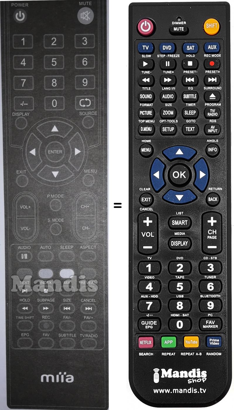 Telecomando che sostituisce l’originale MTV32LCHD in tutte le sue funzioni.