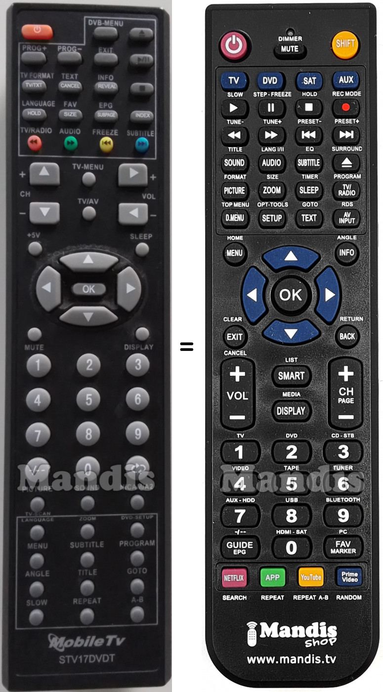 Questo telecomando sostituisce completamente il tuo STV17DVDT-1 e offre tutte le funzioni dell'originale.