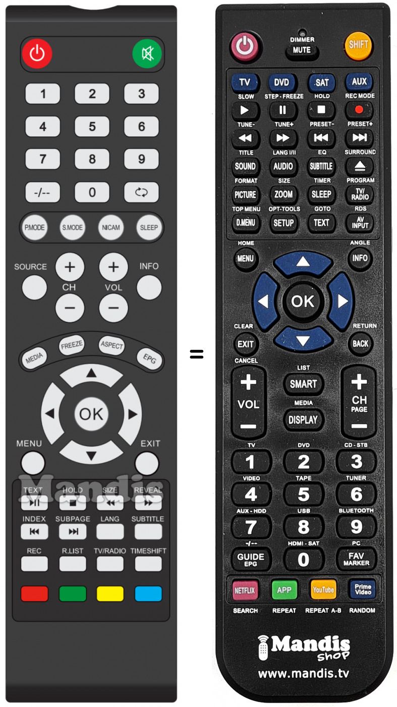 Telecomando che sostituisce l’originale in tutte le sue funzioni.