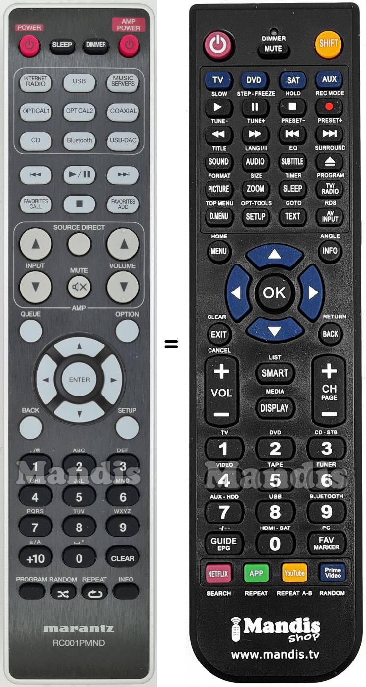 Di seguito, vi mostreremo la corrispondenza tra ciascun pulsante del telecomando originale e il pulsante che svolge la stessa funzione sul telecomando di sostituzione. In alcuni casi, potrebbe essere necessario premere il tasto SHIFT prima di premere un altro pulsante per eseguire determinate azioni. Queste funzioni aggiuntive sono spesso poco utilizzate e sono incluse per facilitare la comprensione del telecomando di sostituzione, o perché il telecomando originale ha più pulsanti rispetto al suo equivalente.