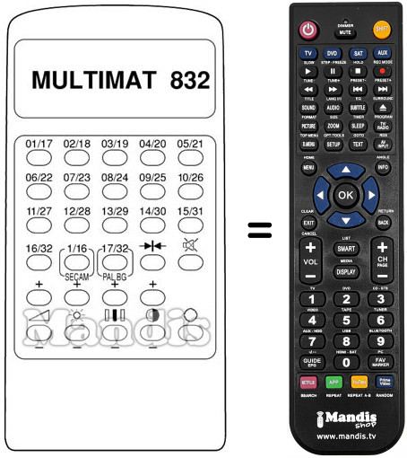 Telecomando che sostituisce l’originale MULTIMAT 832 in tutte le sue funzioni.