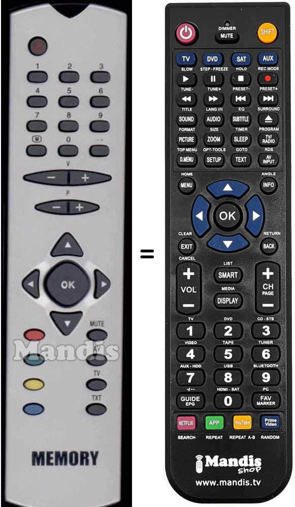 Telecomando che sostituisce l’originale ATV 6121 in tutte le sue funzioni.