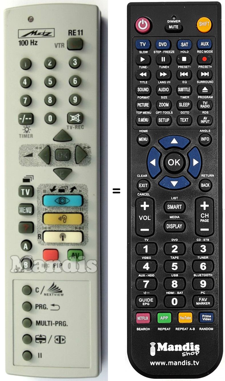 Telecomando che sostituisce l’originale RE 11 (600RE1167KD) in tutte le sue funzioni.