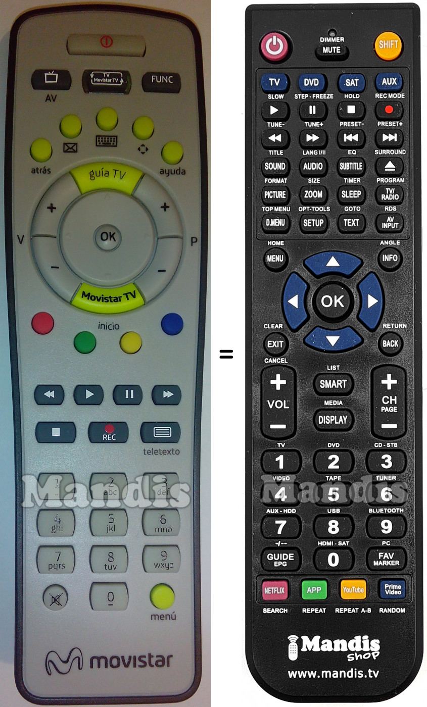 Questo telecomando sostituisce completamente il tuo Movistar-1 e offre tutte le funzioni dell'originale.