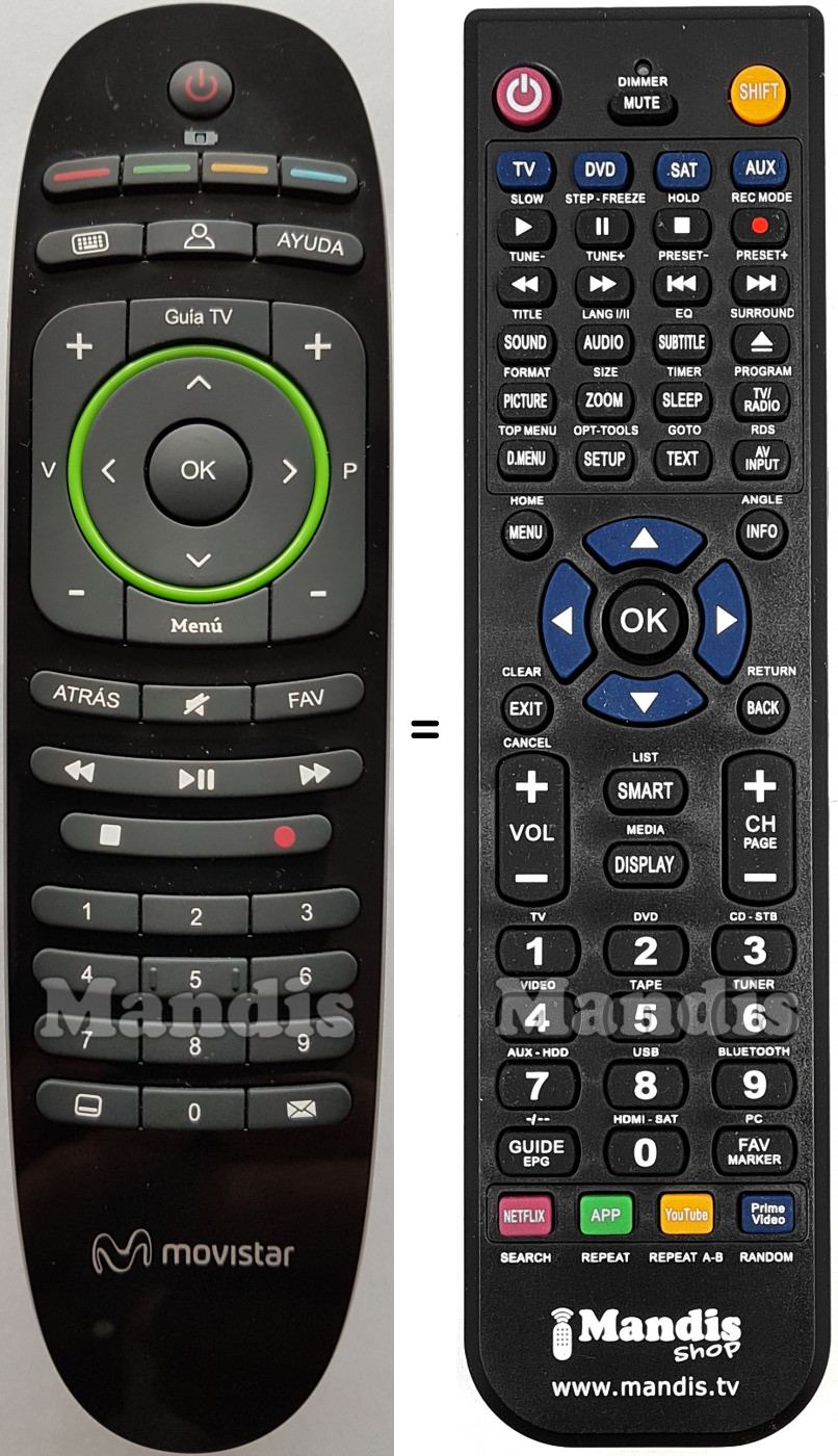 Di seguito, vi mostreremo la corrispondenza tra ciascun pulsante del telecomando originale e il pulsante che svolge la stessa funzione sul telecomando di sostituzione. In alcuni casi, potrebbe essere necessario premere il tasto SHIFT prima di premere un altro pulsante per eseguire determinate azioni. Queste funzioni aggiuntive sono spesso poco utilizzate e sono incluse per facilitare la comprensione del telecomando di sostituzione, o perché il telecomando originale ha più pulsanti rispetto al suo equivalente.